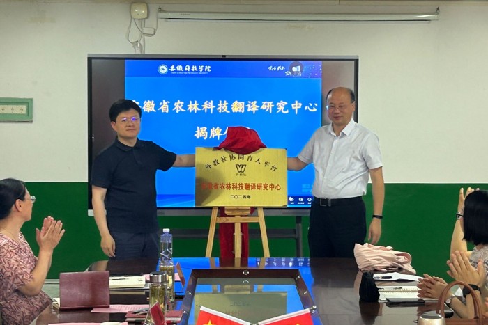 安徽省农林科技翻译研究中心是上海外语教育出版社与我校外国语学院合作共建的协同育人平台。该中心将以农林科技为特色,立足本校、联合省内、辐射长三角,坚持实践导向和成果导向,为农林行业和乡村振兴提供语言服务。(特约通讯员:吴远青 摄影:马东东 审核:刘萍 胡文靖 编辑:李锦)