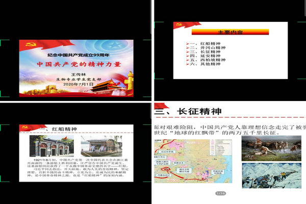 会议伊始,党支部通过腾讯会议集中观看了短视频《从红船到巨轮》,一同领略了中国共产党带领全国人民发展壮大,攻坚克难,创造辉煌的过程。接着,党支部书记王传林为大家讲授了一堂党课《中国共产党的精神力量》,他按时间脉络向大家详细讲解了“红船精神”、“井冈山精神”、“长征精神”、“延安精神”、“西柏坡精神”及其他重要精神,介绍了各个精神的核心内涵、产生历史背景、典型党史故事、当代价值意义等。