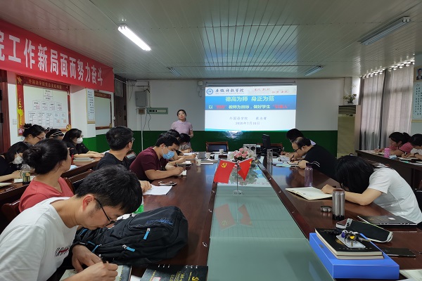 为进一步深推做实“以案示警、以案为戒、以案促改”警示教育,7月10日下午,外国语学院在会议室举行深化“三个以案”警示教育专题党课,学院党总支书记蔡为青向学院全体教职工进行了授课。