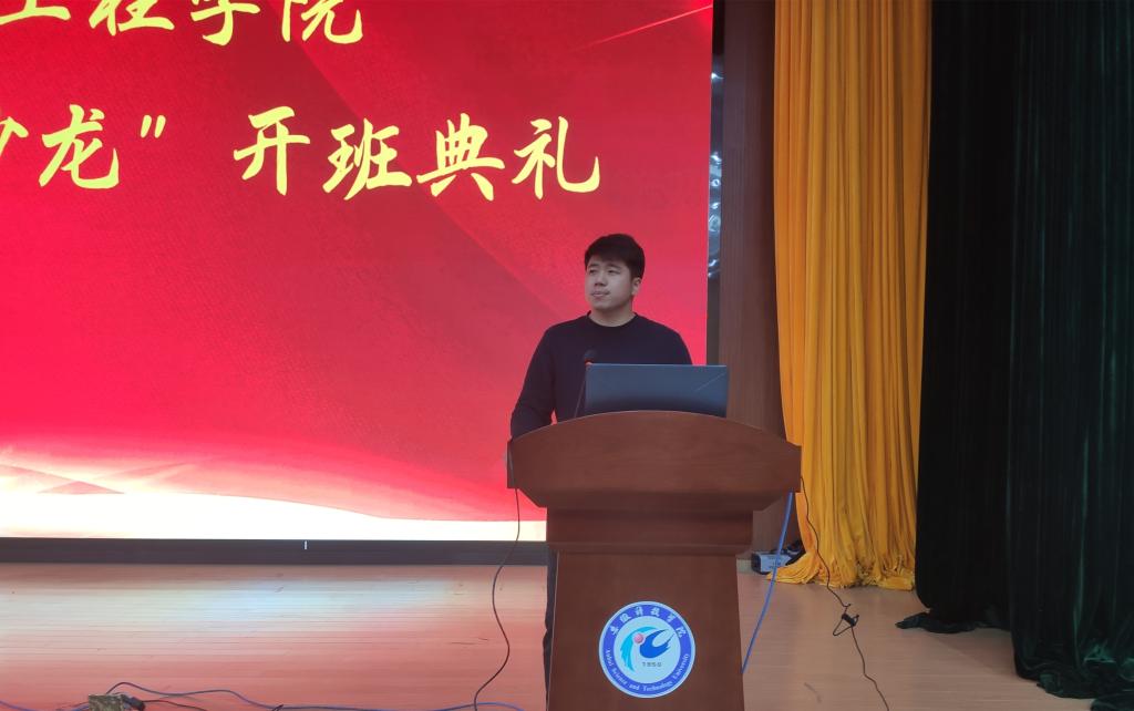 典礼伊始,全体参会人员起立,齐唱国歌。分团委学生委员陈楠对前期“青马沙龙”进行了简要总结,重点介绍本期学习内容。第十四期青马优秀学员代表陈天俊和第十五期青马学员代表陈良戈依次进行发言。