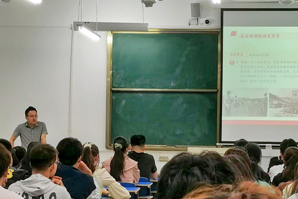 欲知大道,必先为史。历史是最好的“教科书”“营养剂”,尊重和珍惜历史、善于总结历史经验是我们党一贯的优良传统和政治优势。朱中军围绕致敬人民英雄牢记初心使命的主题,从抗美援朝的历史背景、为什么要抗美援朝、抗美援朝的过程、抗美援朝的伟大意义、传承和发扬抗美援朝精神等五个方面向广大学生干部讲述了中国人民志愿军抗美援朝的党史故事;朱中军重点讲述了抗美援朝英雄黄继光、和邱少云的英勇事迹:为保护战友被烈火焚烧却纹丝不动,面对敌军飞机大炮钢铁洪流,抱起炸药包冲进敌军,为了胜利高举炸药包,英雄们用血肉之躯换来祖国山河无恙、人民安居乐业;最后朱中军号召全体学生干部要学习和发扬抗美援朝精神,领悟中国人民志愿军在抗美援朝过程所展示的爱国主义、国际主义、革命英雄主义、革命乐观主义、革命忠诚精神,并从中汲取奋进力量。