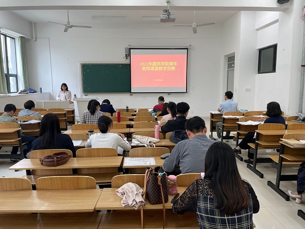5月19日下午,建筑学院在龙湖校区致知楼C103举办了2021年青年教师讲课比赛。校教学督导黄保宏、郭竹梅及学院专家组成评审组,于敏、袁玲、马暄等9位教师参加了比赛。比赛由副院长吴伟东主持,学院教师到场观摩比赛。