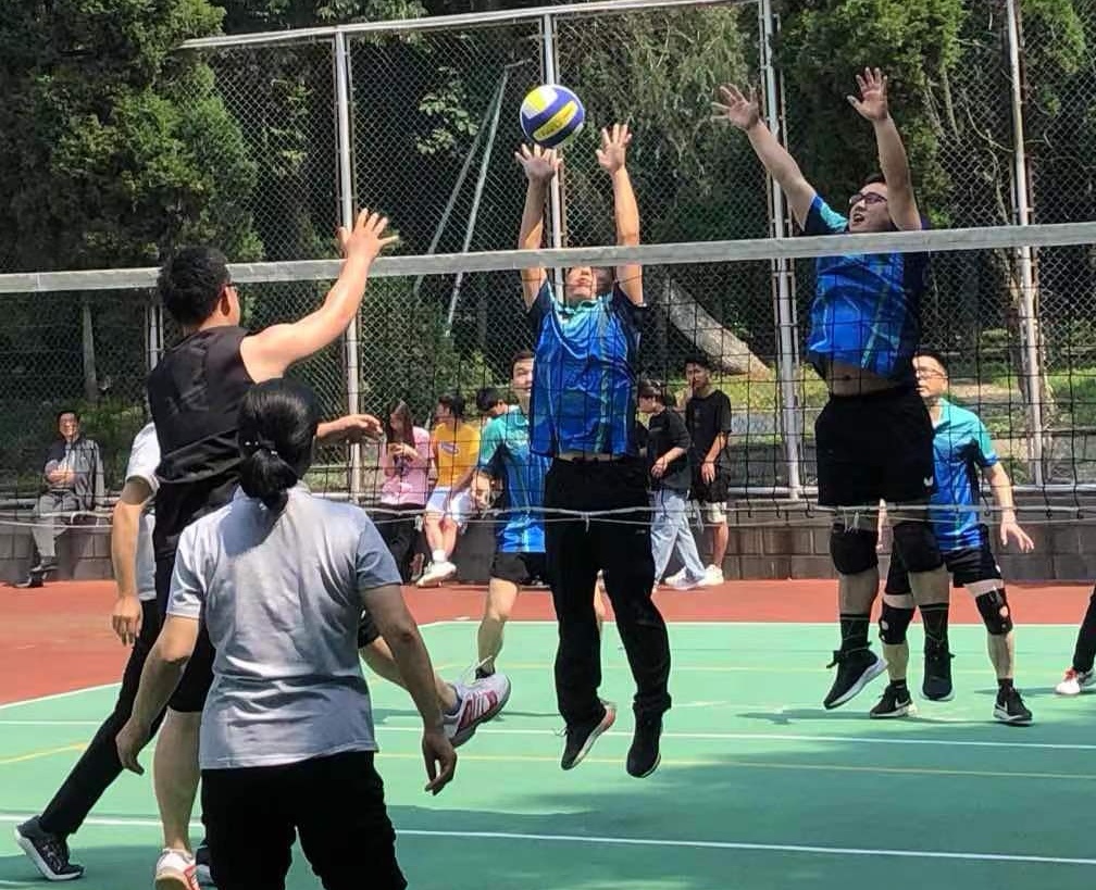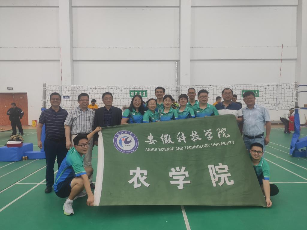 赛前,农学院老师响应党委号召,在工会组织下积极报名组队。这支由博士、教授为主力的代表队勤学苦练,球技快速提升,球员配合逐渐默契。赛中,队员们团结协作,奋力拼搏,相互鼓励,在农学院特聘教练秦纪强教授的现场指导下,赛事进展虽有波折但有惊无险,主力队员舒英杰、刘言龙、何克勤(女)、汪道兵和艾昊等均表现出色,精准扣球、巧妙吊球不断出现。精彩纷呈的赛况让观战师生大饱眼福;师生拉拉队呐喊助威,给运动员们加油打气。比赛时,农学院党委书记何世潮和院长崔广荣等领导、老师亲临现场慰问,为运动员们树立信心和关怀鼓励。最终,经过决赛苦战,农学院代表队以2:1比分战胜了机关四代表队,摘得桂冠。赛后,农学院党政领导、分工会主席及观赛校友牛峰、刘俊和权林等与运动员们在一起合影留念,定格这一难得的胜利。