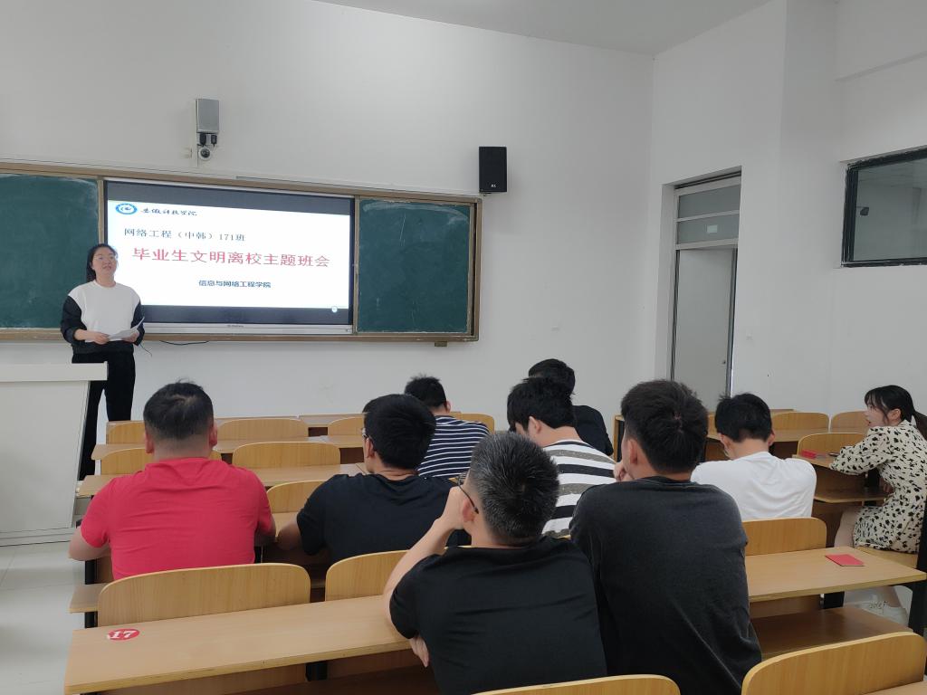 为营造和谐温馨的毕业生离校氛围,确保学生安全、有序、文明离校,5月20日-5月30日,信息与网络工程学院组织各班级开展2021届毕业生毕业教育和文明离校教育活动。