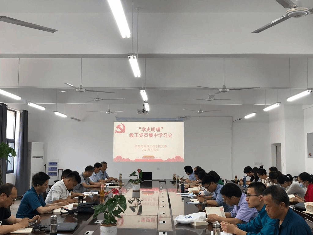 为深入学习贯彻落实习近平总书记在党史学习教育动员大会上的讲话精神,6月2日下午,信息与网络工程学院在尚行楼B418室,组织学院全体教工党员进行集中学习。学院党委书记王振其、院长余宏杰、正处级组织员周向群、副书记韦乃学、副院长何恩节、副院长曹浩以及全体教工党员参加学习会,会议由王振其主持。