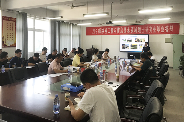 6月6日,2021届农业工程与信息技术领域硕士研究生毕业答辩会在机械工程学院笃行楼409会议室举行。答辩委员会由合肥工业大学韩江教授、农业农村部南京农业机械化研究所吴爱兵副研究员、合肥工业大学田晓青副教授、我校信息与网络工程学院院长余宏杰教授、电气与电子工程学院高海涛副教授组成,韩江教授担任本次答辩委员会主席,郭纯副教授担任本次答辩委员会秘书;研究生处处长张春雨教授、校督导员程郁昕教授莅临答辩会指导;17名2021届毕业生参加此次毕业答辩,参与答辩的硕士研究生导师列席答辩会,2020级部分研究生也旁听了本次答辩会。