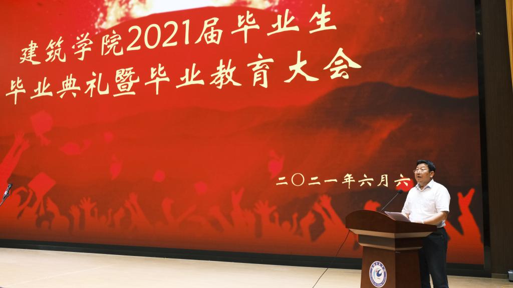 6月6日晚,建筑学院在龙湖校区东辅楼二楼报告厅隆重举行2021届毕业生毕业典礼暨毕业教育大会,学院党政领导、工会主席、教研室实验中心主任,部分教师和学生代表,2021届全体毕业生及辅导员参加。典礼暨大会由学院党委副书记谢宜勤主持。