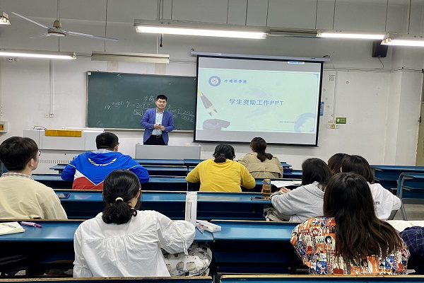 为了提高学生资助工作的实效性和精确性,2021年6月4日晚上,外国语学院在求知楼B座108教室举办资助“两节课”之2021年生源地信用助学贷款政策培训会。外国语学院团委副书记、资助工作联系人宋兵兵主持会议,各班生活委员参加。