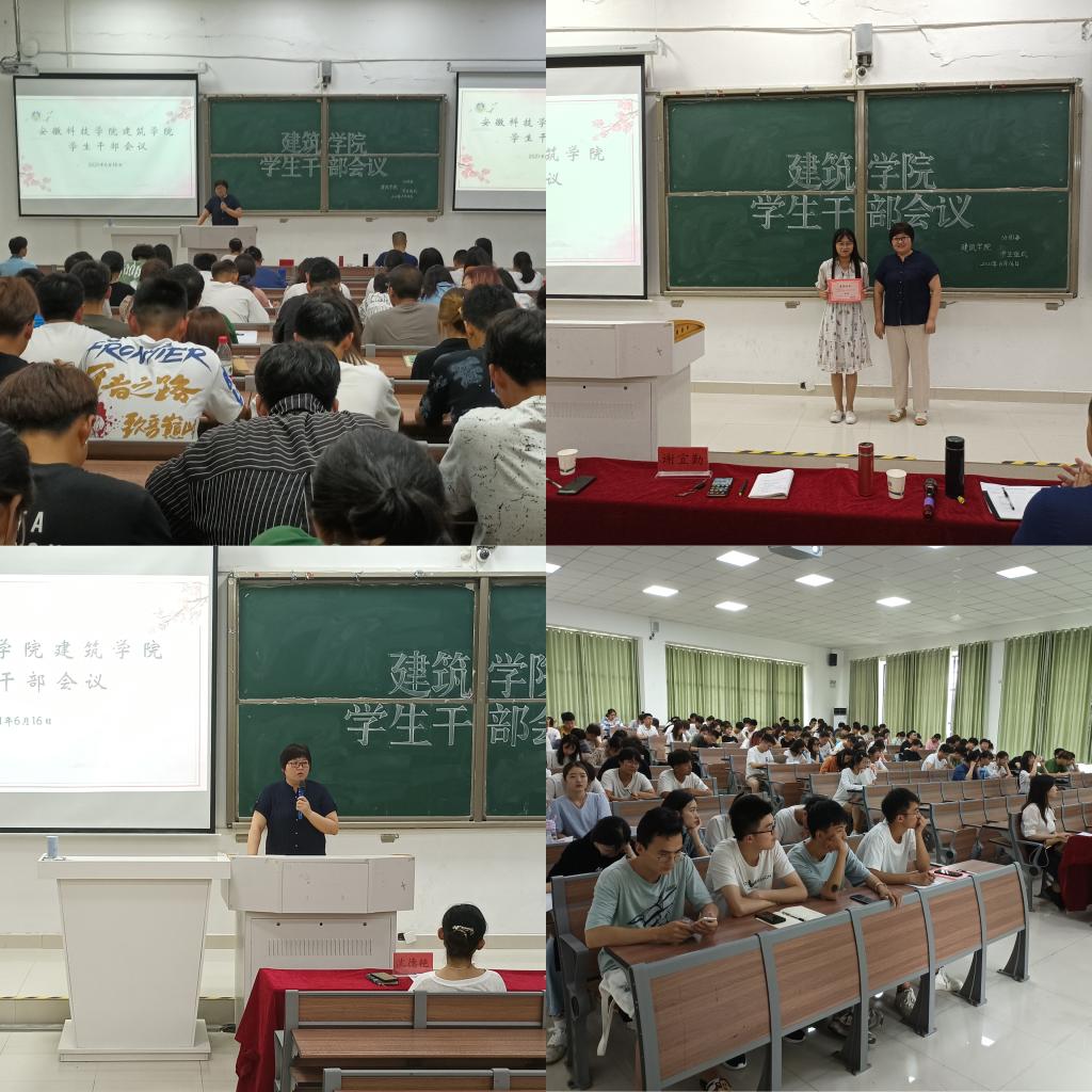 本次大会共分为三个部分内容。第一部分,沈德艳、李新、阮怀思分别对自己分管的工作进行了总结和汇报,并对学生干部工作进行了肯定和要求。李新对本学期的征兵和医保资助工作进行了总结,对各班学生干部的工作给予了肯定与感谢。阮怀思对本学期建筑学院的各项艺术体育活动和易班工作站的工作进行了总结。沈德艳从本学期学生工作部署、学生工作特色、党史学习教育等方面进行了全面地梳理,并对下一阶段的学生工作进行了要求。第二部分为建筑学院第五届班级风采大赛颁奖仪式。最后,谢宜勤对本次大会进行总结,她指出要增强诚信考试意识,做到疫情防控常态化并对防溺水、防诈骗、交通安全等相关安全问题进行了强调。在学生干部培养方面,谢宜勤指出学生干部要增强集体荣誉感与责任心,要自律、自强起到模范表率作用。