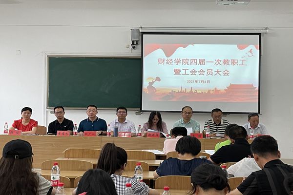 7月4日下午,财经学院在龙湖校区致知楼A406教室隆重召开四届一次教职工暨工会会员大会。学院党政领导和全体教职工参加大会,会议由学院党委副书记耿广汉主持。