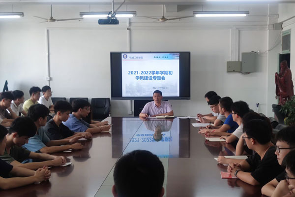 为进一步浓厚学风建设氛围,持续提升学风建设成效,落实《关于进一步加强学风教风和工作作风建设的通知》、《机械工程学院关于切实提升学风建设成效的实施方案》等方案,2021年9月3日中午,机械工程学院在学院会议室召开学期初学风建设专题会议,会议由机械工程学院党委副书记、纪委书记张程主持,辅导员孟凡生、邱杰和全体2019级、2020级各班班长、学习委员参加会议。