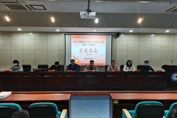 为加强学生党性教育,规范党校培训,10月27日下午,生命与健康科学学院在新图书馆一楼报告厅举办入党积极分子培训班开班典礼。学院党委书记詹学文,党委副书记彭丽萍,党政办公室主任王传林,正科级辅导员兼正科级组织员邓艳萍,副科级辅导员刘国祥,专职辅导员孙玉楼,专职辅导员张迪出席典礼,党员代表及全体培训班学员参加典礼。开班典礼由彭丽萍主持。