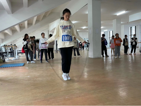 跳绳运动健儿们不停的跳动着,虽然胳膊酸了,腿也软了,力气没了,但她们仍然努力拼搏,永不退缩。