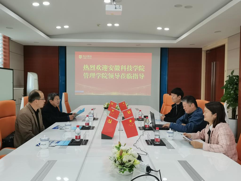 4日下午,丁景良一行来到科大国创软件股份有限公司。科大国创软件股份有限公司党委副书记陈争勇简要介绍了公司的发展历程、战略目标和我院毕业生在岗实习情况,并围绕“打造ZHI品牌,建设非公党建新标杆”作了重点详细介绍。丁景良和陈传万分别介绍了学校和学院发展规划、学科专业建设和毕业生基本情况,感谢公司在学生实习实训期间给予的支持与指导,双方就校企党建合作进行了深入交流探讨。2022届物流管理专业毕业生方健等汇报了在公司实习情况,表示将不辜负学校老师的培养教诲,努力完成实习任务,为就业打下坚实的基础。之后,在陈争勇的带领下参观了科大国创公司展厅,详细了解了公司的发展历程、业务方向、研发体系和产品销售等。