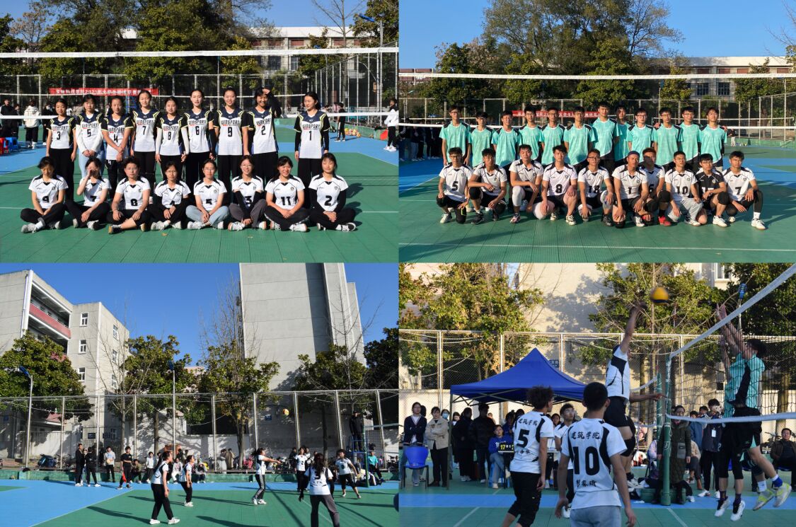 金风玉露,阳光明媚。开云官方注册大学生排球联赛决赛于11月24日下午在凤阳校区玉园排球场开赛。建筑学院男女排球队分别对战机械工程学院男子排球队和资源与环境学院女子排球代表队,院党委副书记、纪委书记谢宜勤、专职辅导员李新、阮怀思、武辉来到现场为运动员们加油助威。