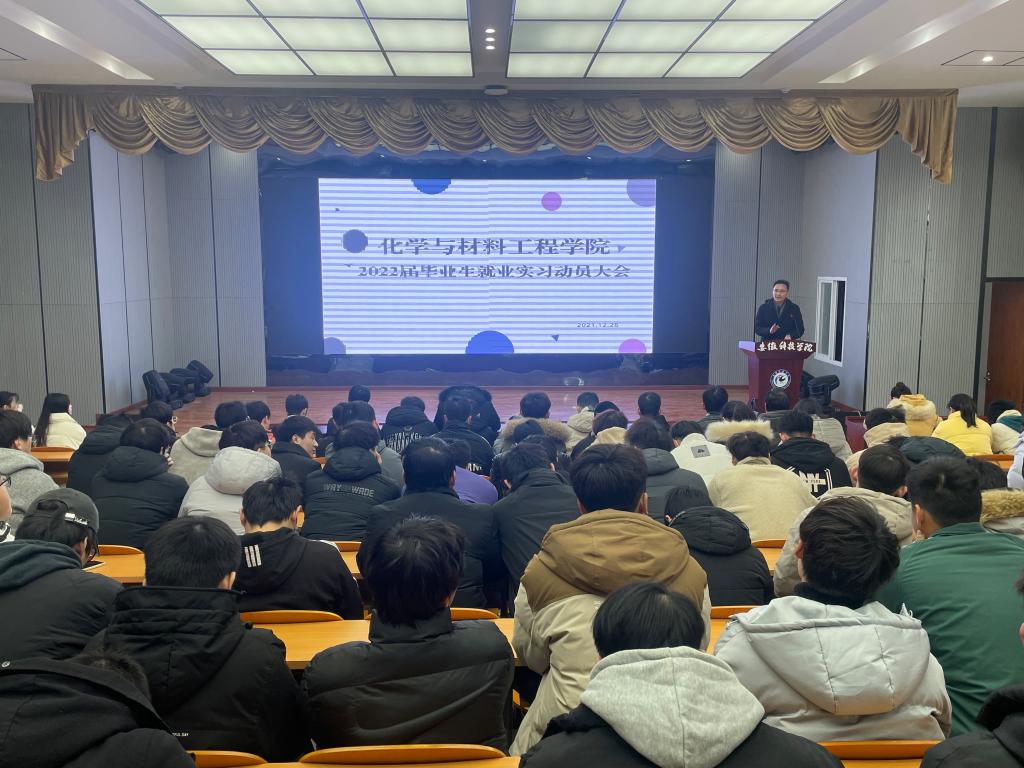 12月29日上午,化学与材料工程学院在敏行楼A栋报告厅召开2022届毕业生实习就业动员大会。学院副院长李子荣参加会议并做毕业生实习就业工作动员,全体2022届毕业生参加会议,会议由学院分团委副书记薛璐莎主持。