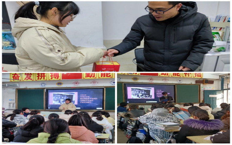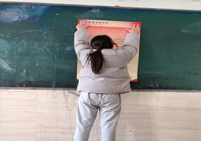 随后,实践团成员跟随老师到高三部分班级开展学校宣传介绍、发放宣传册,耐心细致地解答学弟学妹们关心的问题并传授高三学习经验和方法,同时开展“一中学子在安科的新发展”讲座,播放开云官方注册宣传片,介绍了开云官方注册的学校条件、历史渊源、校园风景、师资队伍、考研录取率等相关情况。随后在班级内部张贴喜报,向母校报喜。