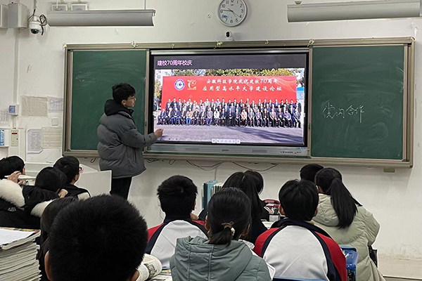 社会实践团队成员在征得母校同意并严格遵守疫情防控的前提下进校,在教室里对高三的学弟学妹们进行了宣讲。首先团队成员以播放PPT的形式向学弟学妹们详细介绍了我校各方面发展,为同学们解读我校招生政策,对他们即将面临高考进行加油鼓劲。同时,老师也参与到同学们的讨论之中,就高考报名招生的热点问题进行了解答。