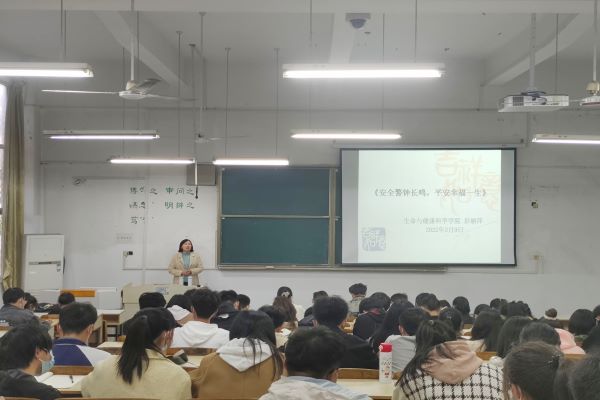 为进一步提高大学生的安全意识和自我保护能力,3月9日下午,生命与健康科学学院在求知楼A101教室开展以“安全警钟长鸣,平安幸福一生”为主题的安全教育讲座。学院党委副书记彭丽萍担任主讲人,各班级学生代表,团委、学生会、易班等人员聆听讲座。