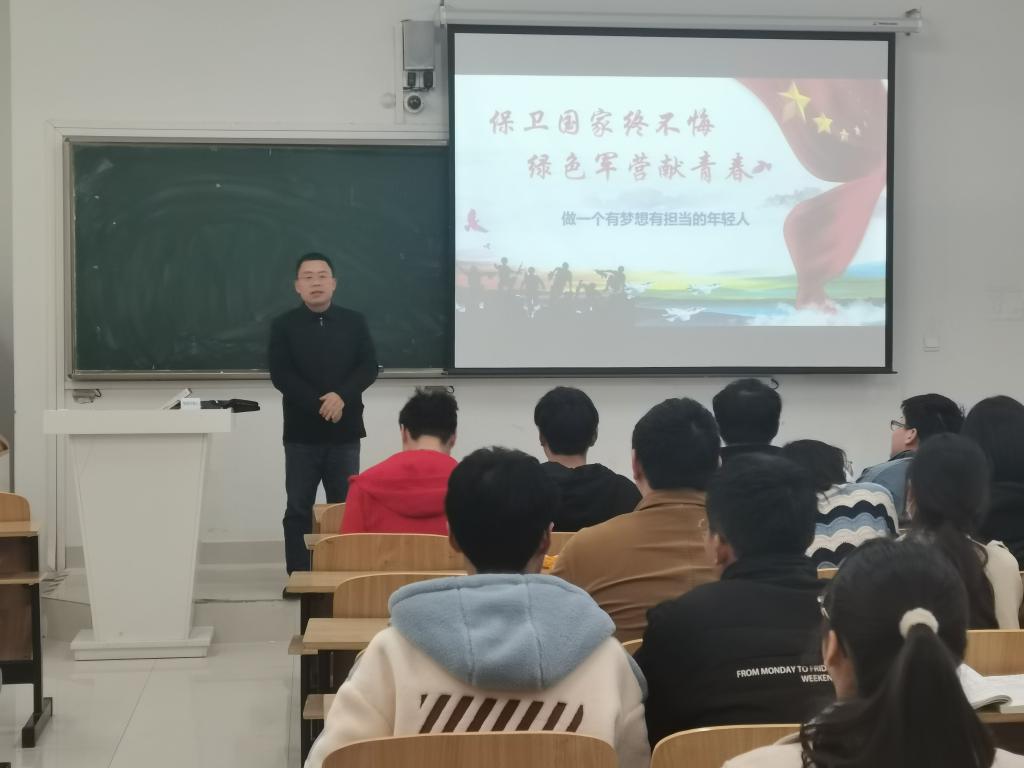 首先,各班级观看各类兵种的征兵宣传片,热血画面深深震撼了每位同学。其次,各位辅导员介绍了大学生入伍优待政策,重点讲解了大学生当兵享受优先征集入伍、入伍高校新生和在校生学籍保留、国家资助学费、大学毕业生士兵可直接提干、享受一次性奖励金等优惠政策,这些政策充分显示党和国家对大学生征兵工作的重视;各位辅导员还介绍了退役大学生士兵学业优惠政策、退役大学生士兵安置和就业政策、参军入伍政治经济待遇等政策,增加同学们对退役后学业和就业的信心。最后,各位辅导员鼓励大学生响应国家号召,踊跃接受祖国的挑选,到部队的大熔炉中磨砺意志、锻炼品质,到部队的大学校里增长才干、成就人生,到部队的大舞台上尽展才华、建功立业,让人生在实现军梦中绽放绚丽的光彩。