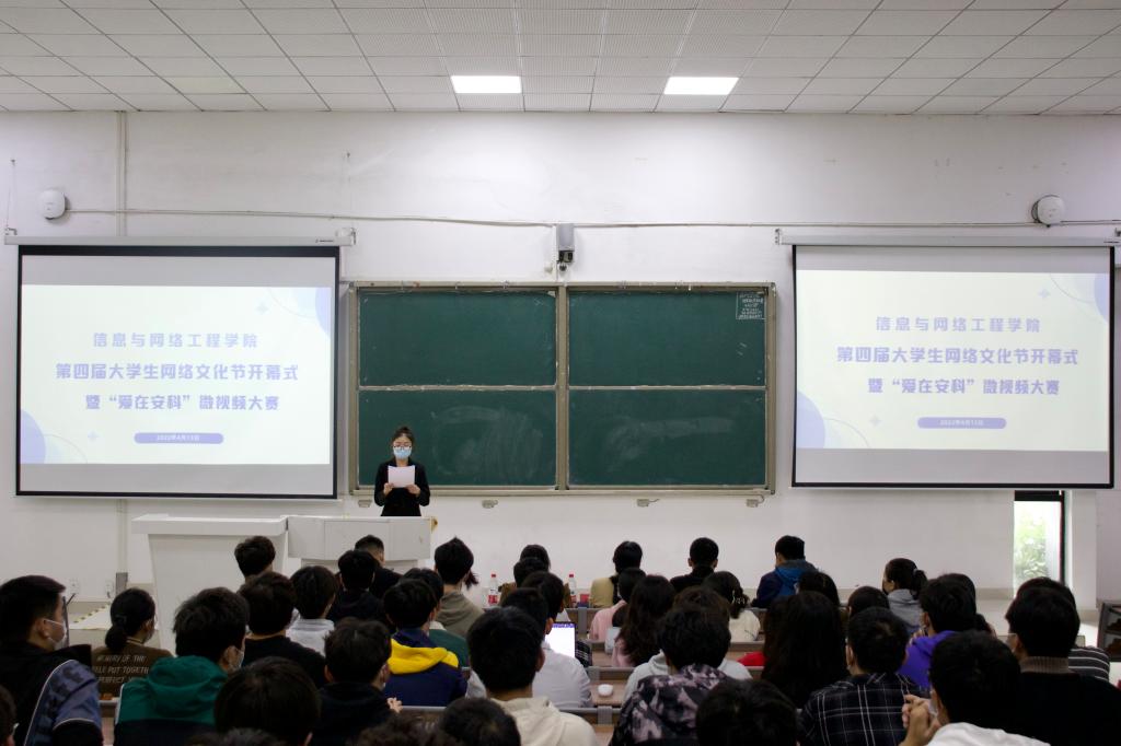 为强化网络育人,提升大学生综合素质,传递网络正能量,4月13日下午,信息与网络工程学院于致知楼C111举办第四届大学生网络文化节开幕式暨“爱在安科”微视频大赛评选活动。信息与网络工程学院党委副书记韦乃学、团委书记汪琦、专职辅导员陈凯、李军成、丁阿敏、崔北坤出席开幕式,学院学生会全体成员、19-21级学生干部参加了开幕式。开幕式由数据科学与大数据技术专业202班曹淑婧主持。