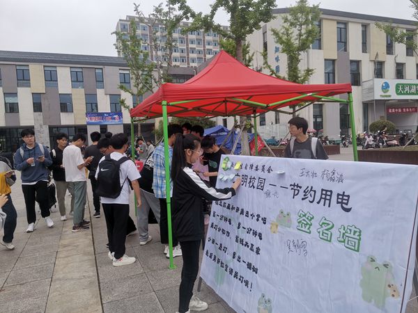 实施节能关灯计划,绿色校园大家共参与。为减少资源浪费,引导广大同学自觉做节约型校园的建设者,在学生处、后勤保障部的支持下,校学生自律委员会于4月22日至4月26日开展文明标语张贴活动,在指定位置规范张贴,呼吁广大同学临走时随手关灯,节约用电。在官方QQ发布倡议,积极宣传节约用电的相关做法,倡导“物尽其用”原则,提高同学们的环保意识。同时在食堂门口小广场开展节约用电签名活动,吸引了很多同学参与。
