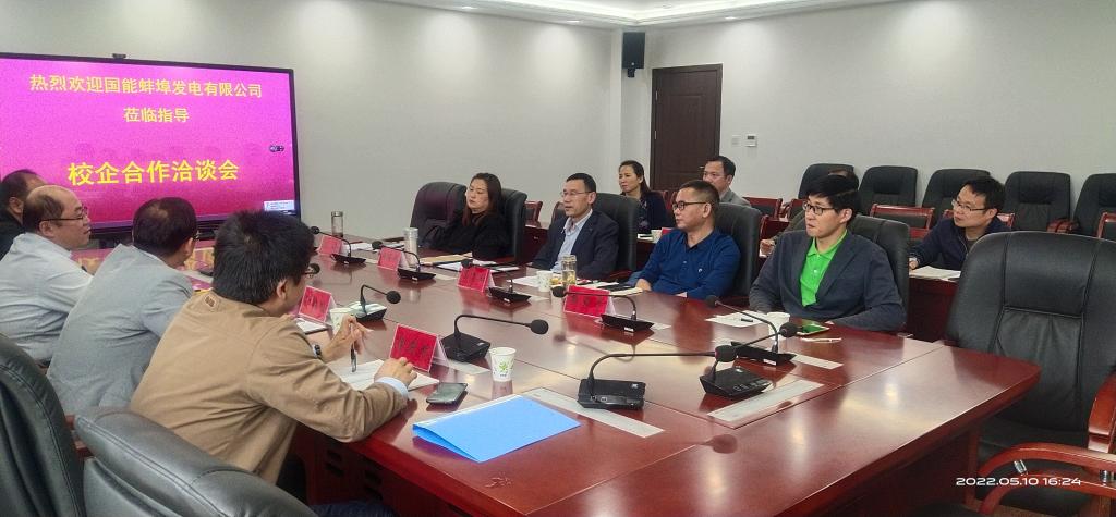 夏显明就学院师资力量、学科建设、实验平台、招生就业、学生考研率、校企合作模式等方面进行了详细介绍。希望借助国能蚌埠发电有限公司和北京智芯融装备制造有限公司先进的平台和丰富的市场资源,开展多方位合作,共建校企联动的应用人才培养模式,期待校企双方加强合作交流,丰富合作形式和内容,提升合作效果。骆海邦强调要继续加强交流,挖掘校企合作切入点、拓宽校企共育人才面,通过接触产生共建的成果,进而实现学校、企业、学生三方共赢。