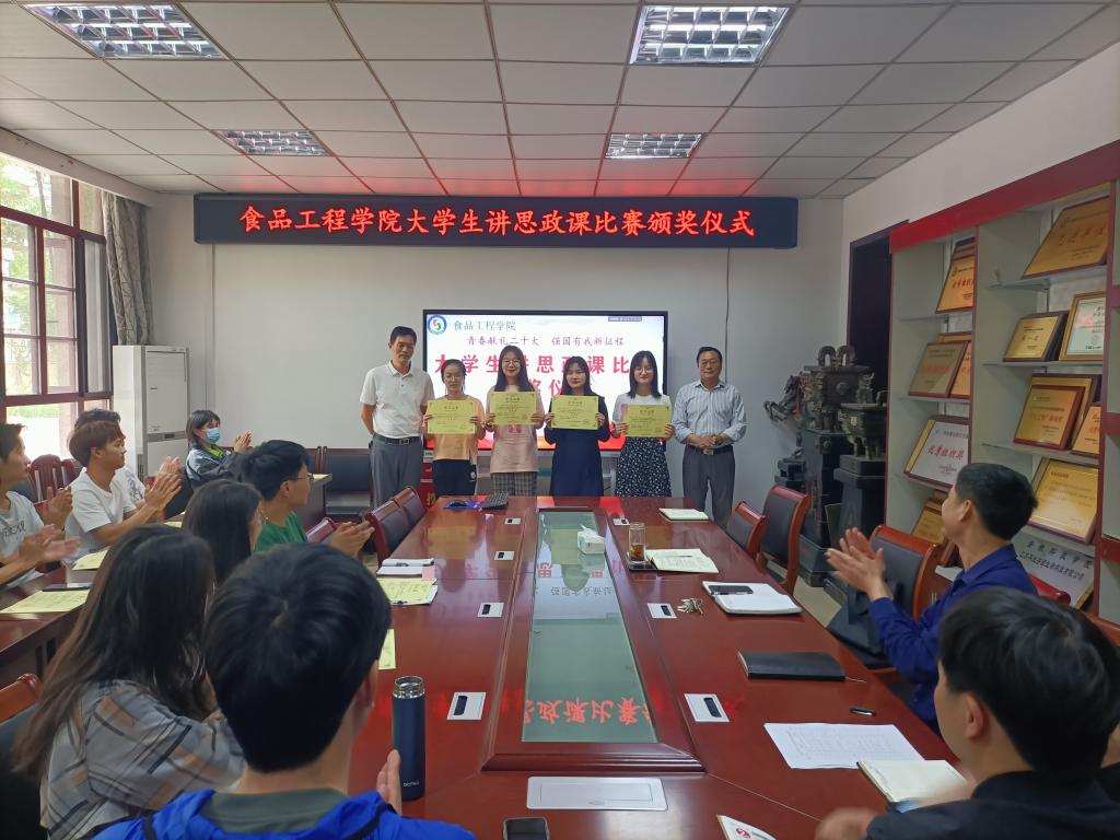 5月18日下午,食品工程学院举办大学生讲思政课比赛颁奖仪式暨学生思政工作交流会。院党委书记付光玺,院长杜传来,院党委副书记、纪委书记王广良,副院长翟立公,食品科学与工程系主任郑海波及全体专职辅导员参加。仪式由赵传磊主持。