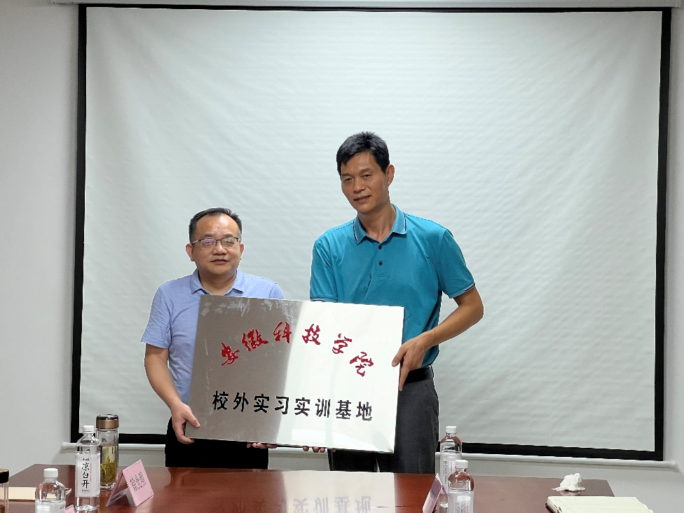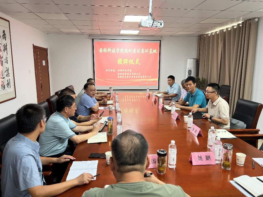 8月15日,安徽倮倮米业有限公司及安徽农垦雪里香食品科技有限公司校外实习实训基地授牌仪式在天长市举行。食品工程学院党委书记付光玺与公司董事长汪登松、天长市科技局副局长查桂银、天长市国家现代农业产业园管理服务中心主任孙如银等进行了座谈。副院长翟立功、李真博士见证授牌,并就产学研合作深入交流。