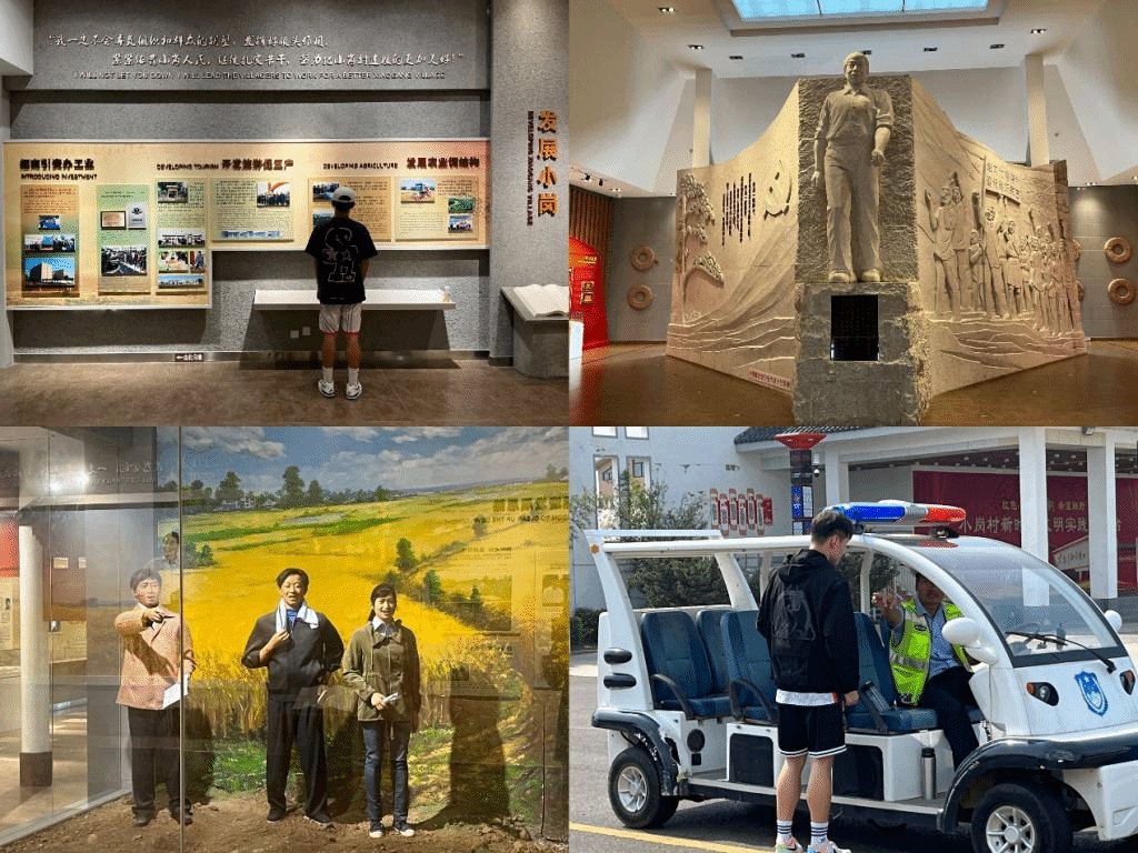 在此次调研过程中,队员们追寻习近平总书记考察小岗村时走过的足迹,参观了纪念馆,访谈改革亲历者。团队成员首先来到大包干纪念馆,聆听了馆内讲解员对于小岗村的详细介绍,了解了大包干带头人和当地村民讲述“大包干”故事。接着来到了一九七八生态农业园,在与工作人员的交谈中,了解到生态园内江苏长江润发集团公司与小岗村东西联动、携手共进,并通过对葡萄的示范栽培,引导小岗人民以农业结构调整为新起点,发展农业现代化。在沈浩同志先进事迹陈列馆里,了解到沈浩同志以忠诚和大爱,以创新和奋斗,以青春和生命,抒写了当代中国农村优秀基层干部的先进事迹和崇高精神,诠释了优秀共产党人的政治品格,树立了新时期基层干部的良好形象。队员们走访了小岗村多地,通过实地考察更加深入地体会小岗精神,了解中国农村在中国共产党领导下进行改革完成蜕变的历史过程。