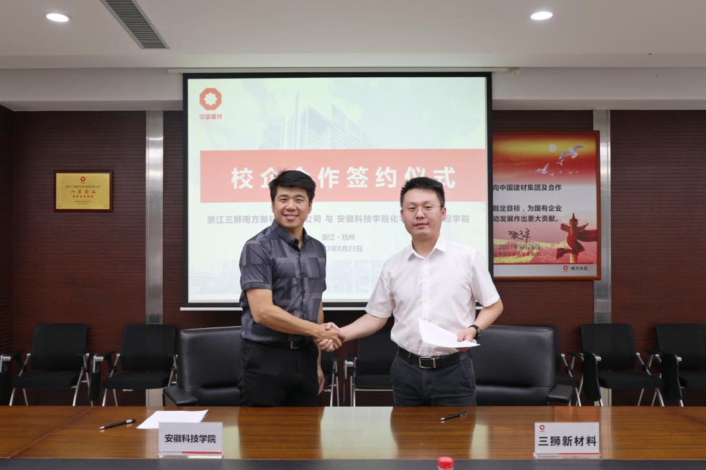 为进一步提高学院人才培养质量和毕业生综合素质,满足企业对应用型人才的需求,8月23日,化学与材料工程学院与浙江三狮南方新材料有限公司在杭州三狮总部举行校企合作签约仪式。公司副总裁江科甫、学院党委副书记张炎出席签约仪式,公司人力资源部总经理王茜、人力资源部总经理助理朱成旺、学院分团委副书记薛璐莎、专职辅导员李潮升参加签约仪式。