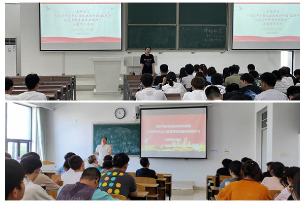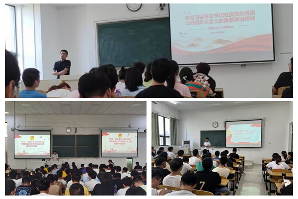 活动中,各团支部组织班级同学观看了庆祝中国共产主义青年团成立100周年大会的视频,从回顾100年来共青团坚定不移听党话、跟党走的青春历程,共青团在党的领导下、团结带领一代代团员青年为实现中华民族伟大复兴的中国梦所作出的重要贡献,共青团和青年工作的历史经验,对当代青年寄予的殷切期望,做好新时代共青团工作的明确要求等方面深刻学习领会习近平总书记重要讲话精神。习近平总书记指出,奋斗是青春最亮丽的底色,行动是青年最有效的磨砺。有责任有担当,青春才会闪光。每个青年都是时代的主角,要知责于心、担责于身、履责于行,在面对重大任务、风险挑战时,要“初生牛犊不怕虎”“越是艰险越向前”,用肩膀扛起如山的责任,展现出青春激昂的风采。