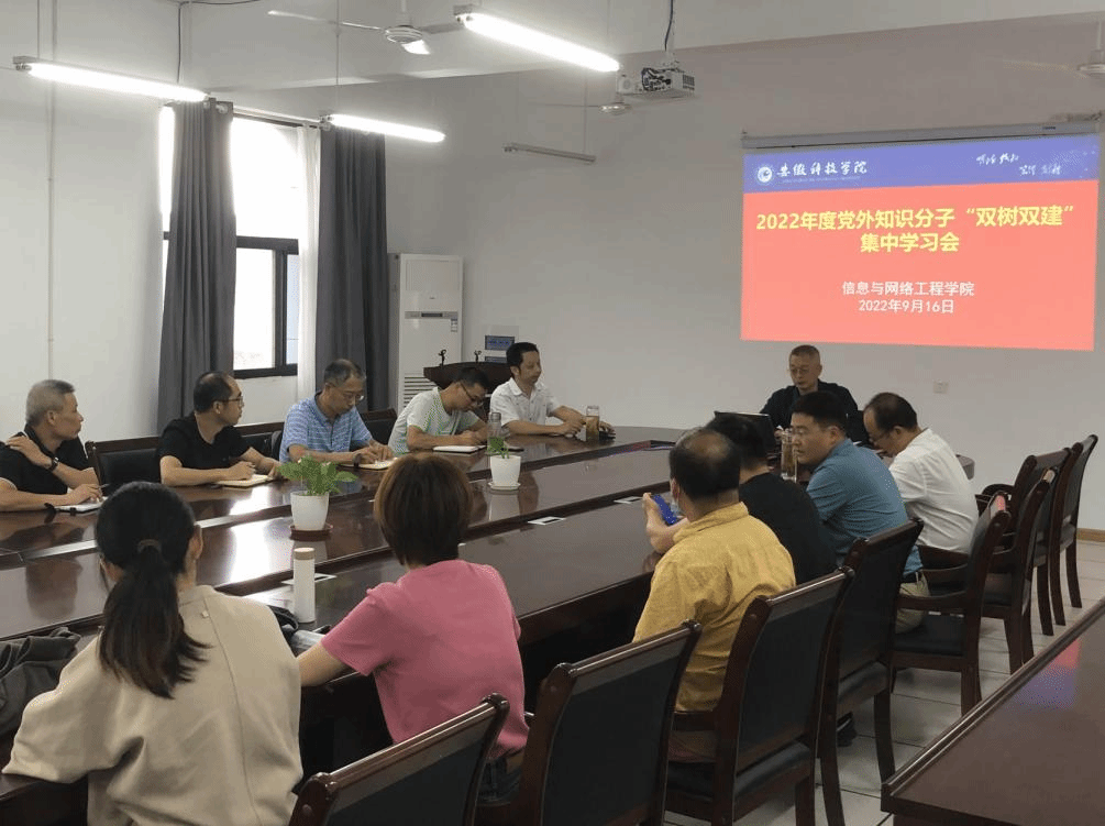 为加强学院党外知识分子的思想政治引领,发挥党外知识分子在学院改革发展中的重要作用,9月16日下午,信息与网络工程学院在尚行楼B418会议室召开2022年度党外知识分子“双树双建”集中学习会。院党委副书记、院长余宏杰,党委副书记韦乃学,副院长何恩节,副院长曹浩及学院全体党外知识分子参加会议,会议由院党委书记王振其主持。