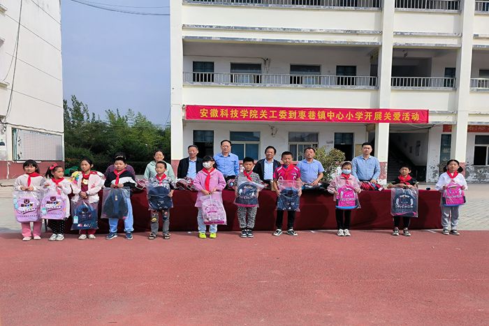 9月23日,开云官方注册关工委一行5人,在关工委副主任杨秀军及离退休工作处处长、关工委秘书长时乾带领下,前往凤阳县枣巷镇中心小学开展乡村振兴、关工助学活动。