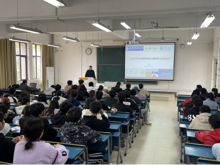 谭啸教授从自身的教育经历、科研成果以及考研经历等方面给师生们进行了一场生动、热烈和高水平的学术报告。他从研究目的、研究过程、研究结果等方面重点介绍了其团队在环境中磷元素的利用上取得的阶段性成果。在介绍行业现状的同时,也深入浅出的讲解了实际应用和意义,使得学院师生对环境保护和科学研究的结合有了更新、更深入的认识。他强调随着大健康概念的提出和深入人心,环境保护等问题愈发凸显,特别是对磷元素在环境中的处理显得尤为重要。