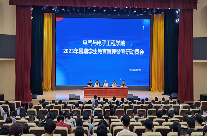 为加强暑期留校学生的安全管理工作,提高学生学习积极性和主动性。7月5日下午,电气与电子工程学院在龙湖校区东辅楼报告厅召开2023年暑期学生教育管理暨考研动员会,学院党政领导、全体辅导员、留校学生、暑期社会实践学生及全体22级暑期金工实习学生参加了会议,会议由党政办公室主任王延丽主持。
