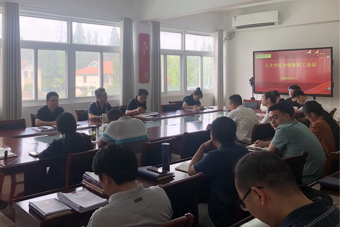 7月7日下午,人文学院召开2023年春季学期期末全体教职工会议,总结本学期各项工作开展情况,部署安排暑期重点工作。学院主要党政领导及全体教职工参加会议。会议由党委副书记、副院长李晓东主持。
