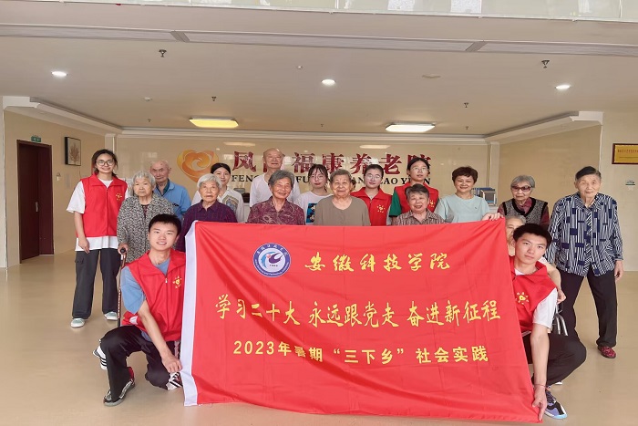 为培养大学生孝老敬老品质和感恩奉献意识,积极践行社会主义核心价值观,7月7日,农学院“暖人心”实践团在团委书记郑玉莲的带领下前往凤阳县福康养老院开展暑期“三下乡”社会实践志愿服务活动。