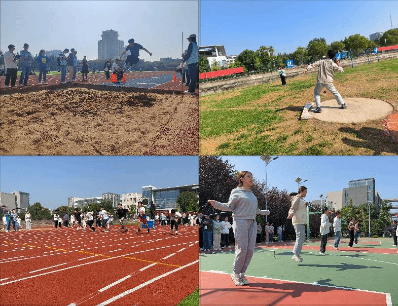 蓄势待发,正是少年风华时。运动场上,人文健儿们自信接受挑战。发令枪响,百米竞赛运动员掠过红色跑道;奋斗拼搏,铅球的弧线划过青春与激情;跳高、跳远,起跳跃过青春的激情;仰卧起坐、跳绳、球类运动等项目,展现出一条青春人文的风景。运动场外,观众加油呐喊,热情高涨,加油鼓励声在广播中随风飞扬。阳光洒下,身着青绿色马甲的志愿人员奔走穿梭,为比赛有序进行做好保障服务;裁判人员恪守规则,严谨细致,保证每一分、每一项的公平公正;宣传人员散布各个角落记录精彩,分享镜头里的“人文芳华”。