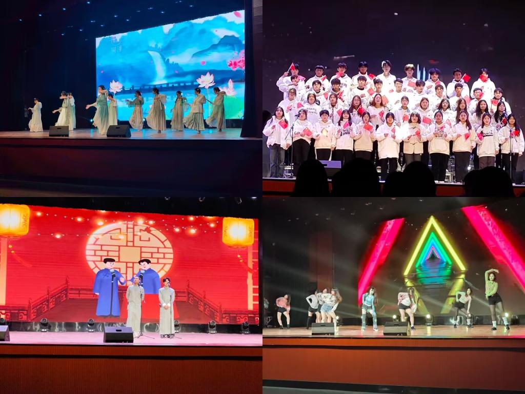 不忘初心,紧跟党走。第二篇章由相声《好学生与坏学生》开幕,相声演员们一捧一逗,将相声说的抑扬顿挫,逗的台下观众哄堂大笑。班级合唱的《有我》朝气磅礴,激起观众们深深的爱国情怀。紧接着的《舞蹈串烧》更让观众们感受到安科学子的青春朝气。