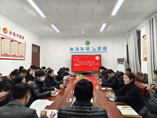 12月6日下午,资源与环境学院在学院会议室召开第一次研究生代表大会。学院党政领导和有关教师出席会议,学院50名研究生代表参加会议,会议由党政办主任吴国良主持。