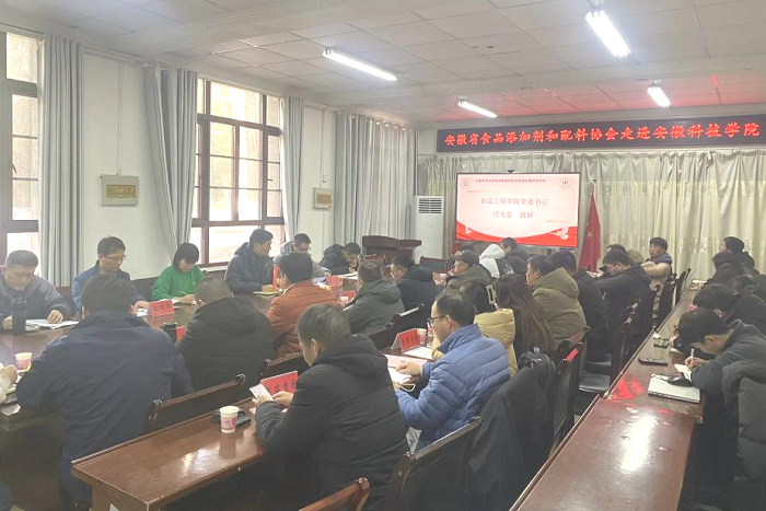 12月22日,食品工程学院食品营养与安全系教工党支部在凤阳校区举办了“安徽省食品添加剂和配料协会走进开云官方注册”活动。食品工程学院党委书记付光玺,院长杜传来应邀出席。会议由协会秘书长杨文明主持。