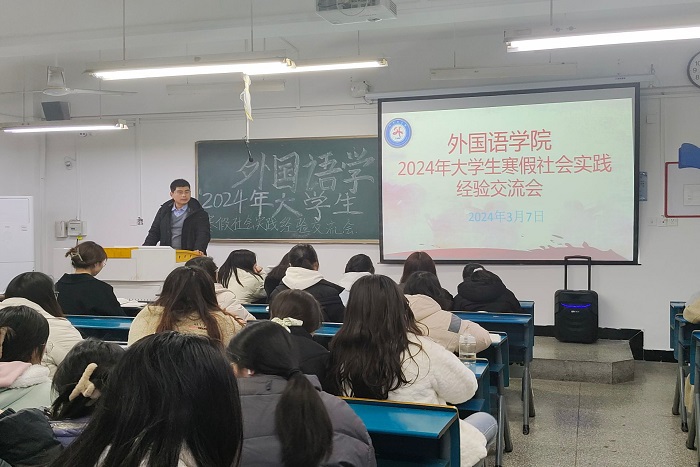 3月7日晚,外国语学院在求知楼B座207教室召开2024年寒假社会实践总结交流会。学院团委副书记宋兵兵出席会议,学院团委各部门主要负责人以及学院2021-2023级团支书参加会议,交流会由学院团委青联部袁红主持。