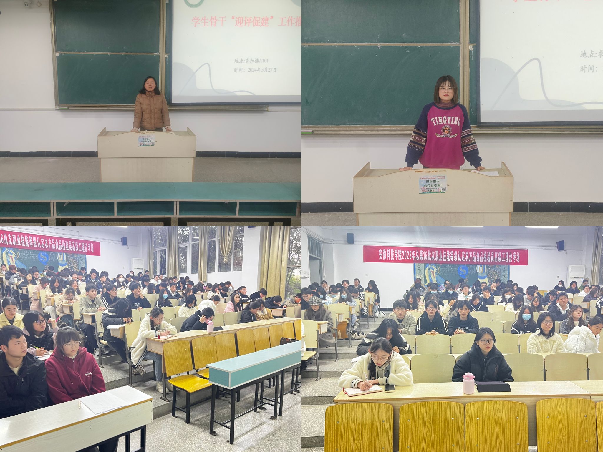 为进一步深化本科教育教学审核评估宣传教育,加强学风建设,营造良好氛围,3月27日下午,生命与健康科学学院在求知楼A101教室召开学生骨干“迎评促建”工作推进会议。学院党政领导,辅导员,各班级部分班干及学生团体主要负责人等参加会议,会议由正科级辅导员刘国祥主持。