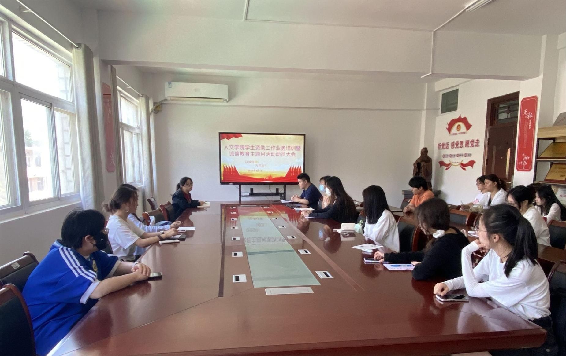 为更加有效推进资助诚信教育主题月各项活动的组织与实施,5月15日,人文学院资委会指导老师鲁冰冰在学知楼324教室主持召开学生资助工作业务培训暨资助诚信教育主题月动员会,学院全体资助委员参加。