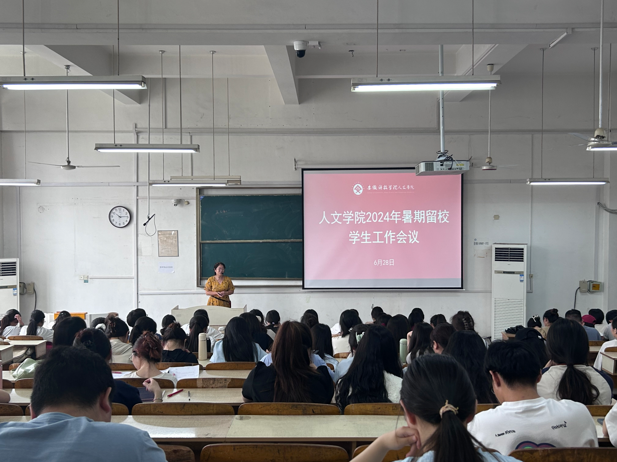 为加强暑期留校学生安全教育与日常管理,确保学生生命财产安全和校园秩序稳定,6月28日上午,人文学院在求知楼A204召开2024年暑期留校学生工作会议。学院党委副书记李沙娜出席并讲话,学院有关教师和全体留校学生参加会议。会议由党政办公室副主任方明旺主持。