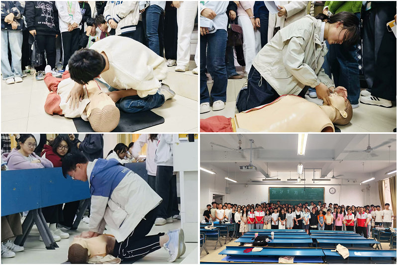 实操环节是培训中的一大亮点。在专业救护人员的指导下,大学生们分组进行心肺复苏、止血包扎、骨折固定等救护技能的实操练习。通过反复练习,学员们不仅掌握了正确的救护手法,还学会了如何在紧急情况下保持冷静,迅速做出判断并采取有效措施。许多参与培训的学生表示,这样的实操训练让他们对急救有了更加直观的认识,增强了应对突发事件的信心和能力。