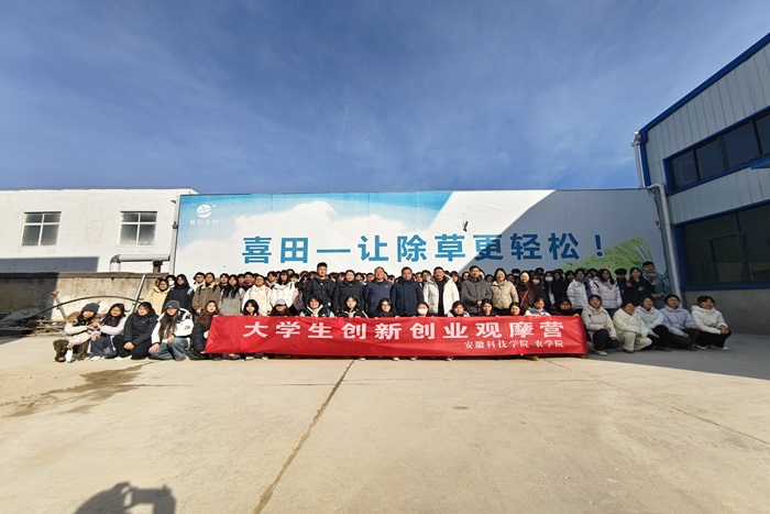 12月29日,农学院组织师生前往安徽喜田生物科技有限公司蚌埠生产基地开展第三十五期大学生创新创业观摩营活动。农学院党委书记何世潮,植物保护系主任毕亚玲等六位老师同行指导。