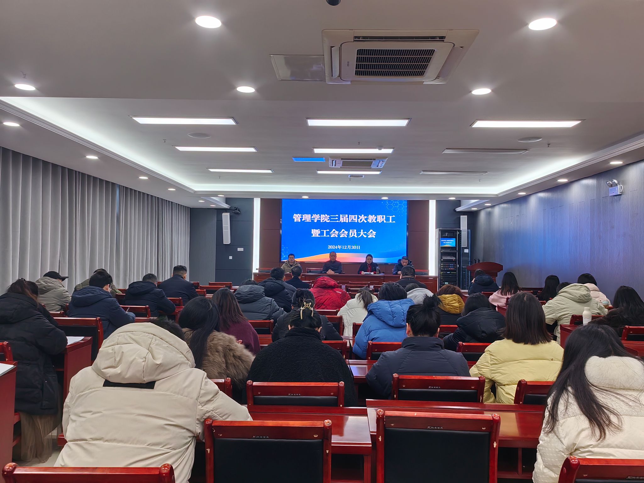 12月30日下午,管理学院在龙湖校区西辅楼111会议室召开三届四次教职工暨工会会员大会,学院党政领导出席会议。会议由学院党委书记丁景良主持。