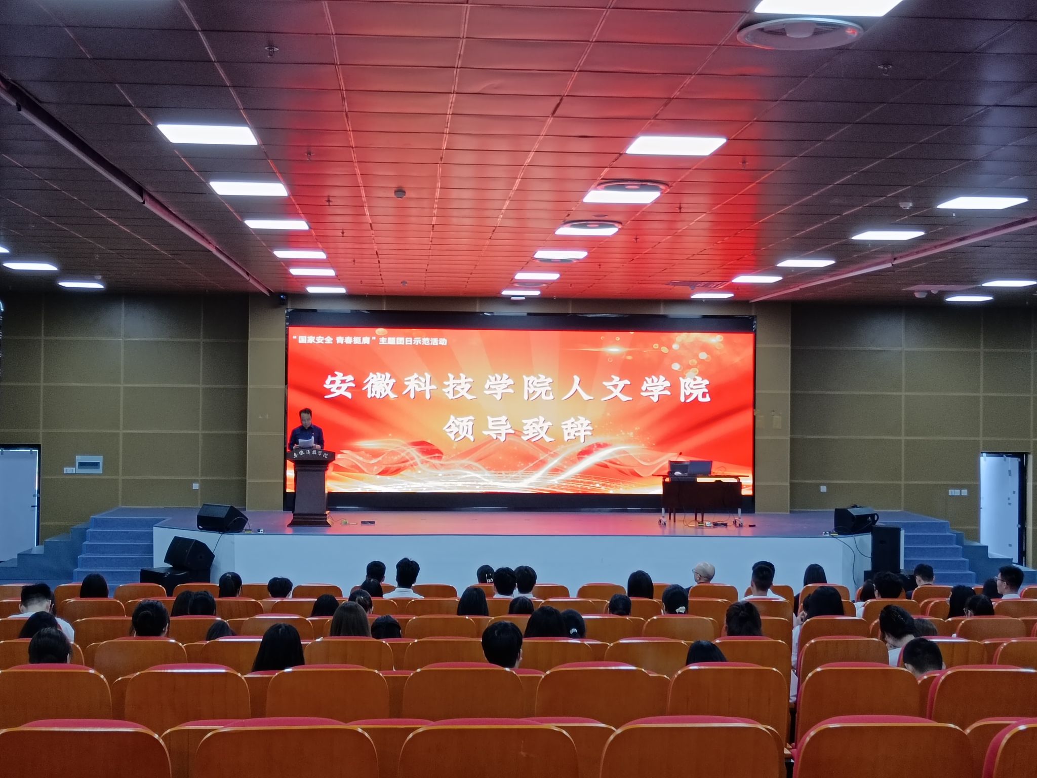 4月9日下午,人文学院与滁州市团委、南谯区团委,在图书馆二楼报告厅,联合举办“国家安全 青春挺膺”主题团日市级示范活动。团市委副书记、市青联主席戴莺,南谯区人民政府副区长金硕,市国家安全局相关人员,团南谯区委书记徐迟,人文学院党委副书记、院长李晓东及人文学院、南谯区团员青年共130余人参加。活动由人文学院团委副书记焦雪松主持。